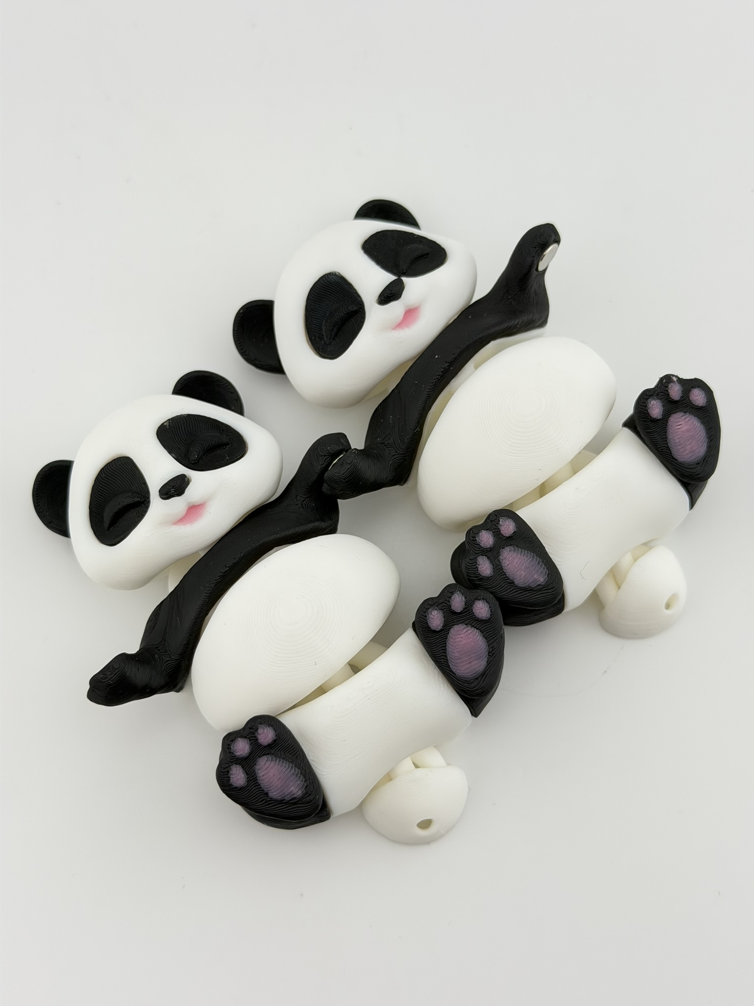 Ta słodka figurka została zaprojektowana tak, aby łączyć się z drugą — dzięki wbudowanym magnesom w łapkach pandy mogą trzymać się razem.